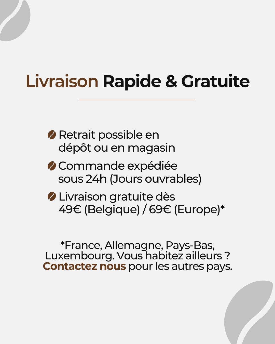 Livraison gratuite à partir de 69 EUR en France, aux Pays-Bas, au Luxembourg et en Allemagne. Nous livrons également dans d’autres pays de l’Union Européenne. N’hésitez pas à nous contacter pour plus d’informations.